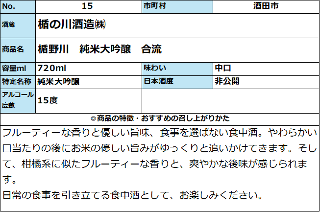 【楯の川酒造】楯野川 純米大吟醸 合流 720ml 日頃、山形県産酒をご愛飲いただいている皆様へ感謝の気持ちを込めて、抽選で40名様にプレゼントいたします。(各賞20名ずつ)●A賞 「山形讃香」720ml 1本●B賞 「山形県産ワイン」フルボトル2本対象商品を1本ご購入で「キャンペーン応募はがき」を1枚進呈。必要事項をご記入しご応募ください。※はがきのQRコードからも応募できます。◆応募受付締切:2026年1月31日(土)迄当選発表は厳正な抽選の上、当選者を決定し商品の発送をもって発表にかえさせていただきます。 販売価格 2,255円(税込み) 会員価格 (税込み) 通常価格 (税込み) 在庫 商品コード 022661 JANコード 数量 - + カートに入れる カテゴリー 清酒 メーカー 楯の川酒造株式会社 キャンペーン 【特設】ご愛飲感謝キャンペーン| おすすめ商品 注文年齢制限 20歳 ~ 注文手続き画面にて、生年月日を入力いただきます。 販売期間 ~2025/11/28 RECOMMENDEDおすすめアイテム 【楯の川酒造】楯野川 純米大吟醸 急流 720ml 3,960円(税込み) 楯野川 純米大吟醸 急流 720ml 3,960円(税込み) 楯野川 純米大吟醸 急流 720ml 3,850円(税込み) 山形酒通のおすすめ 【特設】ご愛飲感謝キャンペーン お歳暮-感謝の気持ちを- 山形酒通厳選 セット商品 おすすめ商品 数量限定商品 秋上がり・ひやおろし 県産新酒ワイン 居酒屋気分ワンカップ リキュール・梅酒特集 産直 厳選グルメ特集 パインサイダー 県内飲料 雑貨 お中元-感謝の気持ちを- 夏酒 2025 ご注文方法 送料・配送について お支払い方法 返金について 特定商取引に基づく表記 お問い合わせ 運営会社のご紹介