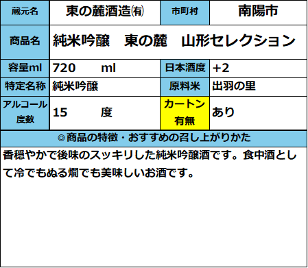 【東の麓酒造】純米吟醸 東の麓 山形セレクション 720ml 販売価格 1,650円(税込み) 会員価格 (税込み) 通常価格 (税込み) 在庫 商品コード 026289 JANコード 数量 - + カートに入れる カテゴリー 清酒 メーカー 東の麓酒造㈲ キャンペーン おすすめ商品 RECOMMENDEDおすすめアイテム 【東の麓酒造】純米大吟醸 龍龍龍龍(テツ)720ml 4,400円(税込み) 【東の麓酒造】純米吟醸 山の形 720ml 2,035円(税込み) 【5月25日発売(予定)】純米酒 東の麓 星座ラベル 720ml 1,452円(税込み) 山形酒通のおすすめ 夏酒 2026 ★イチオシ商品 数量限定商品 お中元-感謝の気持ちを- イタリアワイン おすすめ商品 居酒屋気分ワンカップ パインサイダー 【第30回】山形の地酒 生酒頒布会 産直 厳選グルメ特集 【SALE】訳アリ商品 飲料 雑貨 【新酒】しぼりたて お歳暮-感謝の気持ちを- ご注文方法 送料・配送について お支払い方法 返金について 特定商取引に基づく表記 お問い合わせ 運営会社のご紹介
