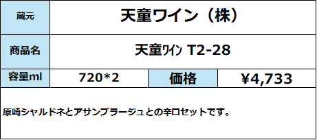 【天童ワイン】天童ワインギフトセット(T2-28) 720ml×2 販売価格 4,733円(税込み) 会員価格 (税込み) 通常価格 (税込み) 在庫 商品コード 091940 JANコード 数量 - + カートに入れる カテゴリー 果実酒 メーカー 天童ワイン株式会社 キャンペーン お歳暮-感謝の気持ちを-| 山形酒通厳選 セット商品| おすすめ商品 注文年齢制限 20歳 ~ 注文手続き画面にて、生年月日を入力いただきます。 販売期間 ~2026/01/31 RECOMMENDEDおすすめアイテム 【10月7日発売】天童ワイン新酒 720ml 1,584円(税込み) 天童ワイン ギフトセット T2-28 720ml×2本 4,733円(税込み) 天童ワイン ギフトセット T2-12 赤・白 各720ml×1 3,798円(税込み) 天童ワイン 白 ドミセック 720ml 1,485円(税込み) 天童ワイン アサンブラージュ 720ml 1,889円(税込み) 天童ワイン 山形メルロー 720ml 1,889円(税込み) 山形酒通のおすすめ お歳暮-感謝の気持ちを- 山形酒通厳選 セット商品 おすすめ商品 数量限定商品 秋上がり・ひやおろし 県産新酒ワイン 居酒屋気分ワンカップ リキュール・梅酒特集 産直 厳選グルメ特集 パインサイダー 県内飲料 雑貨 お中元-感謝の気持ちを- 夏酒 2025 ご注文方法 送料・配送について お支払い方法 返金について 特定商取引に基づく表記 お問い合わせ 運営会社のご紹介
