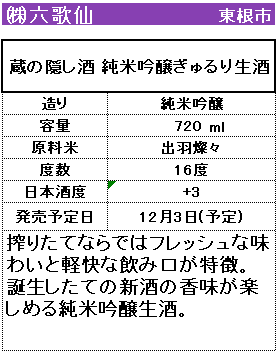 【六歌仙】蔵の隠し酒 純米吟醸ぎゅるり生酒 720ml 販売価格 2,182円(税込み) 会員価格 (税込み) 通常価格 (税込み) 在庫 商品コード 421507 JANコード 数量 - + カートに入れる カテゴリー 清酒 メーカー 株式会社六歌仙 キャンペーン 【新酒】しぼりたて| おすすめ商品 注文年齢制限 20歳 ~ 注文手続き画面にて、生年月日を入力いただきます。 RECOMMENDEDおすすめアイテム 【六歌仙】六歌仙 五段仕込み純米 720ml 1,811円(税込み) 【六歌仙】感謝ラベル 純米大吟醸 720ml 4,253円(税込み) 六歌仙 手間暇 大吟醸 雪女神 720ml 7,131円(税込み) 六歌仙 Hitotoki 220ml×2本入り ギフトセット 1,666円(税込み) 六歌仙 Hitotoki ロゼ 720ml 2,559円(税込み) 六歌仙 Hitotoki ロゼ 720ml 2,559円(税込み) 六歌仙 辛口 720ml 1,111円(税込み) 山形酒通のおすすめ お歳暮-感謝の気持ちを- 【新酒】しぼりたて 数量限定商品 おすすめ商品 居酒屋気分ワンカップ 【特設】ご愛飲感謝キャンペーン 産直 厳選グルメ特集 パインサイダー 県内飲料 雑貨 お中元-感謝の気持ちを- ご注文方法 送料・配送について お支払い方法 返金について 特定商取引に基づく表記 お問い合わせ 運営会社のご紹介