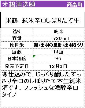 【米鶴酒造】米鶴 純米辛口 しぼりたて生 720ml 販売価格 1,699円(税込み) 会員価格 (税込み) 通常価格 (税込み) 在庫 商品コード 026330 JANコード 数量 - + カートに入れる カテゴリー 清酒 メーカー 米鶴酒造株式会社 キャンペーン 【新酒】しぼりたて| おすすめ商品 注文年齢制限 20歳 ~ 注文手続き画面にて、生年月日を入力いただきます。 RECOMMENDEDおすすめアイテム 【米鶴酒造】米鶴 純米大吟醸 雄町 720ml 2,310円(税込み) 【米鶴酒造】米鶴 大吟醸 巨匠 720ml 5,500円(税込み) 米鶴 盗み吟醸 大吟 720ml 2,500円(税込み) 米鶴 純米まほろば 720ml 1,767円(税込み) 米鶴 スパークリング 750ml 1,999円(税込み) 米鶴 超辛純米 720ml 1,400円(税込み) 米鶴 純米生酒 発泡にごり 720ml 1,798円(税込み) 山形酒通のおすすめ お歳暮-感謝の気持ちを- 【新酒】しぼりたて 数量限定商品 おすすめ商品 居酒屋気分ワンカップ 【特設】ご愛飲感謝キャンペーン 産直 厳選グルメ特集 パインサイダー 県内飲料 雑貨 お中元-感謝の気持ちを- ご注文方法 送料・配送について お支払い方法 返金について 特定商取引に基づく表記 お問い合わせ 運営会社のご紹介