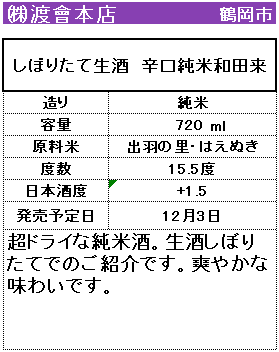 【渡會本店】しぼりたて生酒 辛口純米和田来 720ml 販売価格 1,408円(税込み) 会員価格 (税込み) 通常価格 (税込み) 在庫 商品コード 014067 JANコード 数量 - + カートに入れる カテゴリー 清酒 メーカー 株式会社渡會本店 キャンペーン 【新酒】しぼりたて| おすすめ商品 注文年齢制限 20歳 ~ 注文手続き画面にて、生年月日を入力いただきます。 RECOMMENDEDおすすめアイテム 【渡會本店】しぼりたて生酒 大吟醸和田来 720ml 1,848円(税込み) 【渡會本店】しぼりたて生酒 特別純米和田来 720ml 1,650円(税込み) 【渡會本店】純米大吟醸 YUKIMEGAMI50 720ml 2,200円(税込み) 出羽ノ雪 普通酒 カップ 180ml 275円(税込み) 出羽ノ雪 純米吟醸・特別純米 夏セット 720ml×2本 4,180円(税込み) 出羽ノ雪 純米大吟醸 雪女神仕込み 720ml 3,168円(税込み) 出羽ノ雪 IGO(イ号) 特別純米酒 720ml 1,650円(税込み) 山形酒通のおすすめ お歳暮-感謝の気持ちを- 【新酒】しぼりたて 数量限定商品 おすすめ商品 居酒屋気分ワンカップ 【特設】ご愛飲感謝キャンペーン 産直 厳選グルメ特集 パインサイダー 県内飲料 雑貨 お中元-感謝の気持ちを- ご注文方法 送料・配送について お支払い方法 返金について 特定商取引に基づく表記 お問い合わせ 運営会社のご紹介